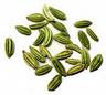 Fennel seeds split into two, one sometimes remaining on the stalk. They are 4 -8 mm (1/8 - 5/16 in) long, thin and curved, with colour varying from brown to light green (the green being superior).